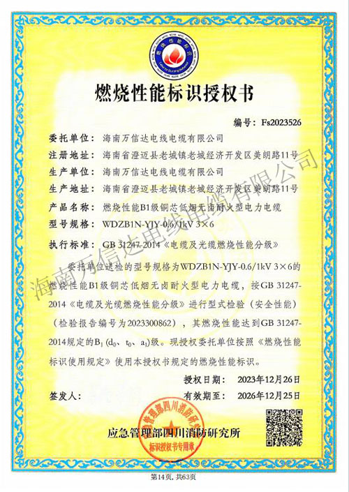燃燒性能標識授權(quán)書